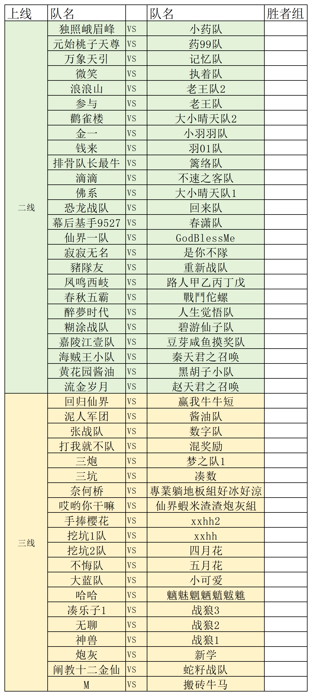 考虑到大部分玩家在周内相对比较忙碌,今天将进行两轮比赛,为了保证公平性不再进行45组的小组赛,采取二轮淘汰制具体赛制可查看附件表格安排,二轮战斗